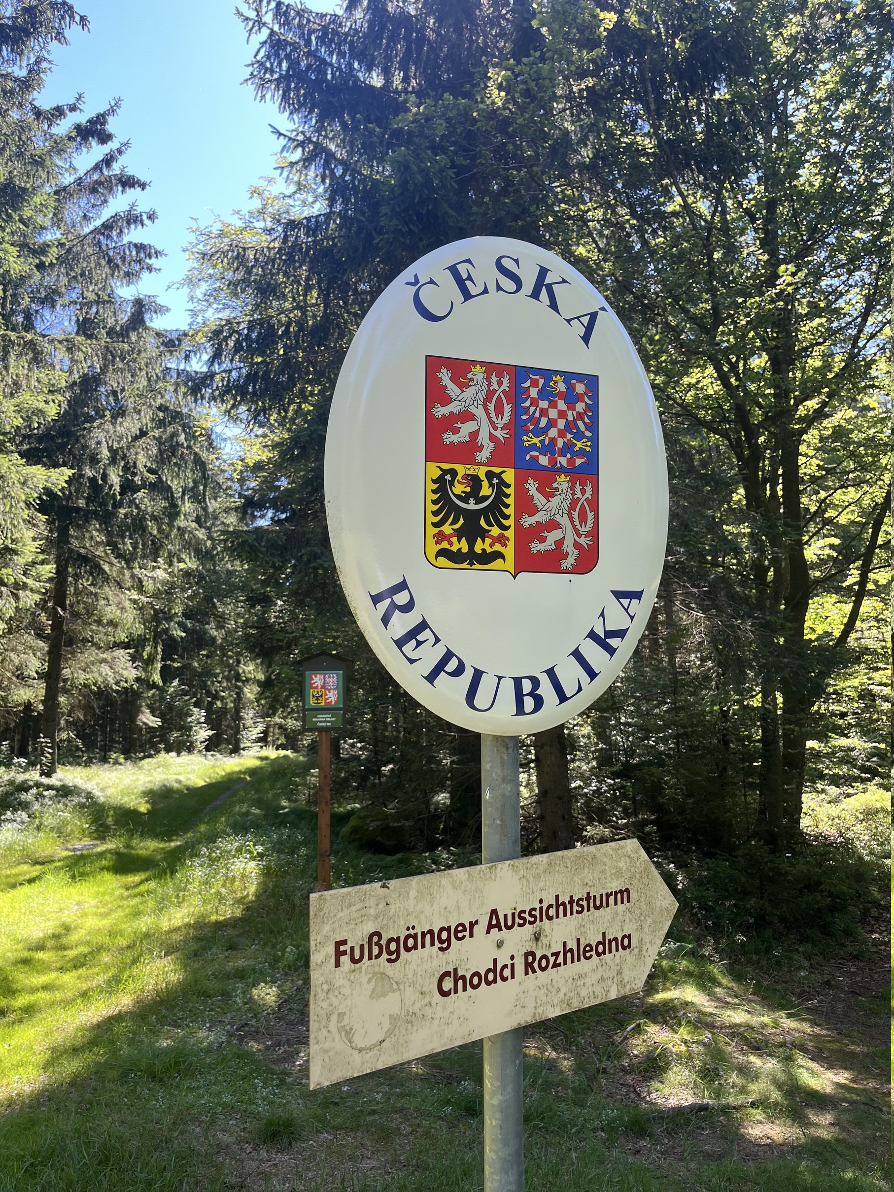 To my disappointment, there was no border control or officials—just a few signs that I quickly took photos of before continuing into the Czech Republic. The descent was fantastic! A beautiful, dense, and healthy forest stretched out before me. I couldn’t help but think how glad I was to have my mountain bike instead of my gravel bike—there were far too many large stones to navigate. I flew through the first few kilometers in the Czech Republic at full speed.