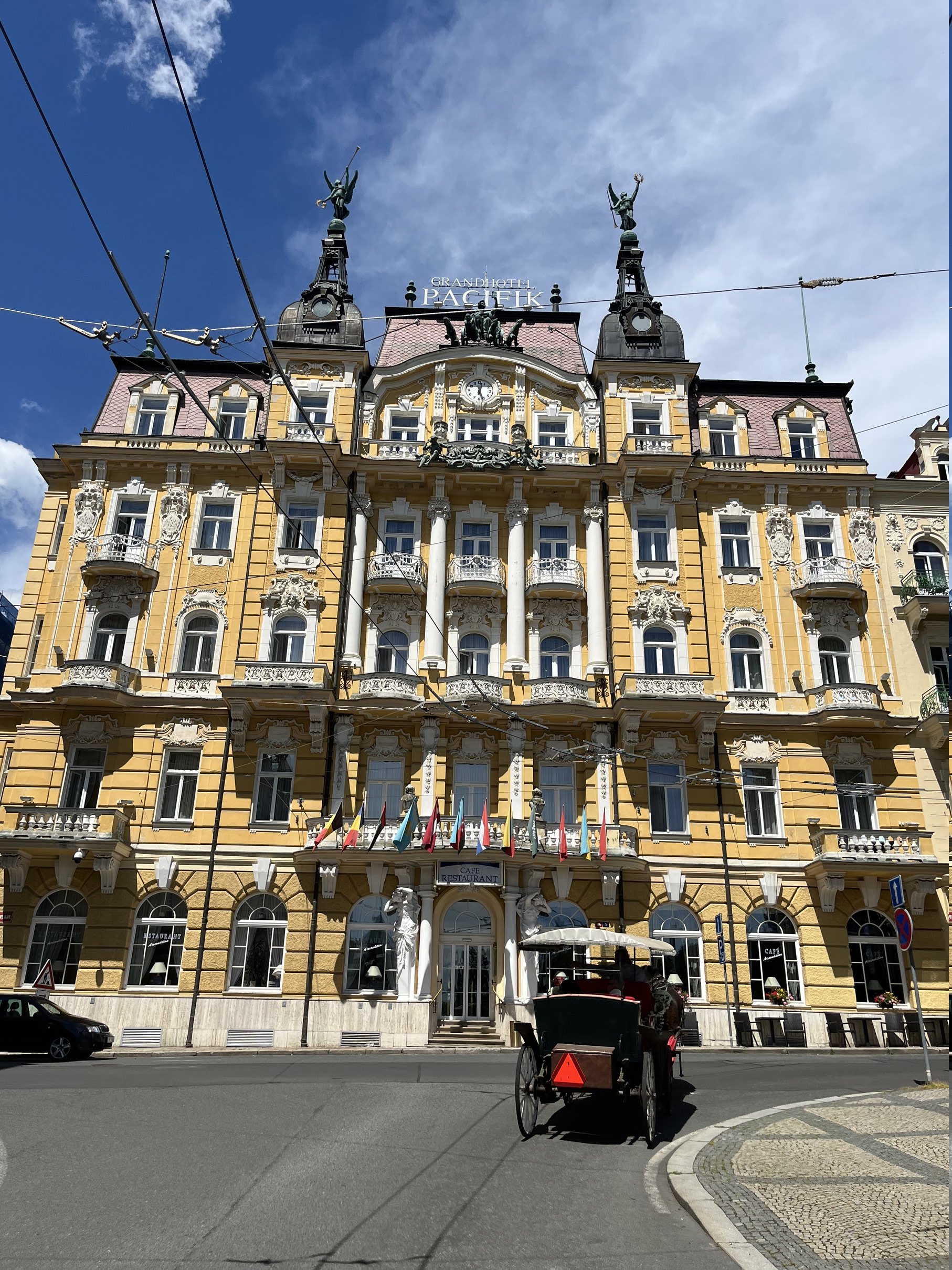 Day three was set to be a quieter one. I had no plans to ride all the way to Prague today, as the sun was going to be intense again. Instead, I picked a small town between Karlovy Vary (Carlsbad) and Prague as my destination. However, I decided to spend the morning exploring Karlovy Vary a bit more on my bike. It’s a really beautiful place, though quite touristy. The highlight of the day came after just 6–8 kilometers: an incredible view of Karlovy Vary from above. It was absolutely stunning.