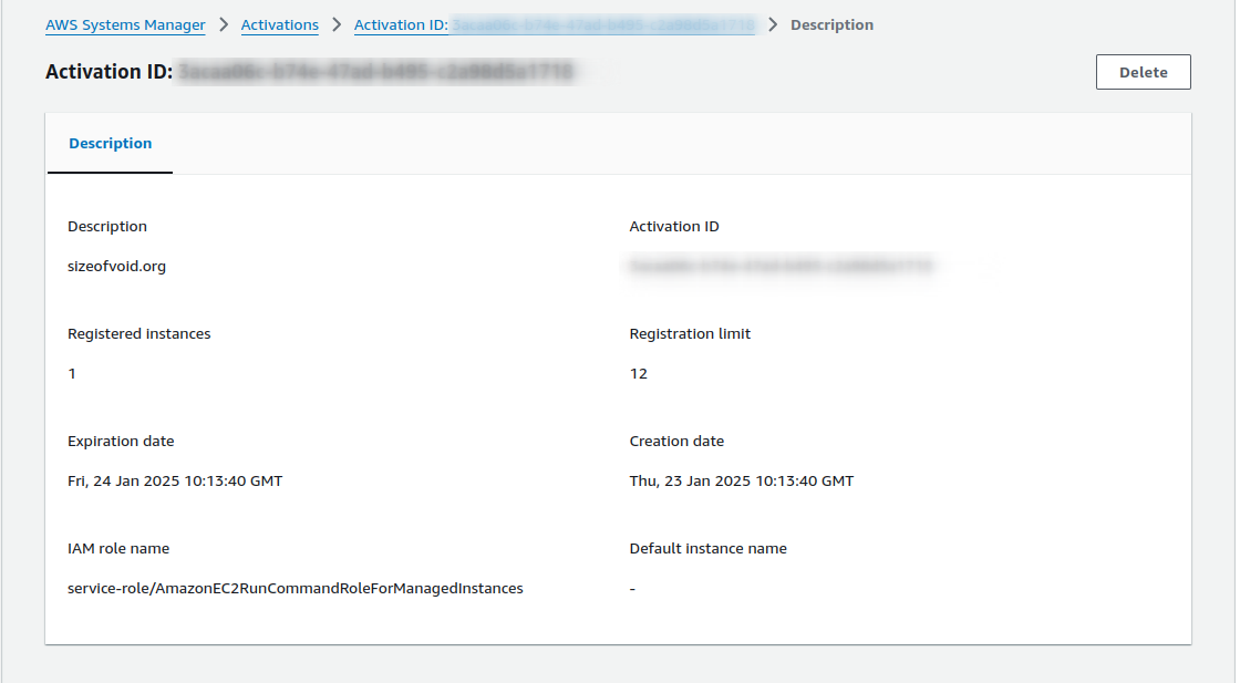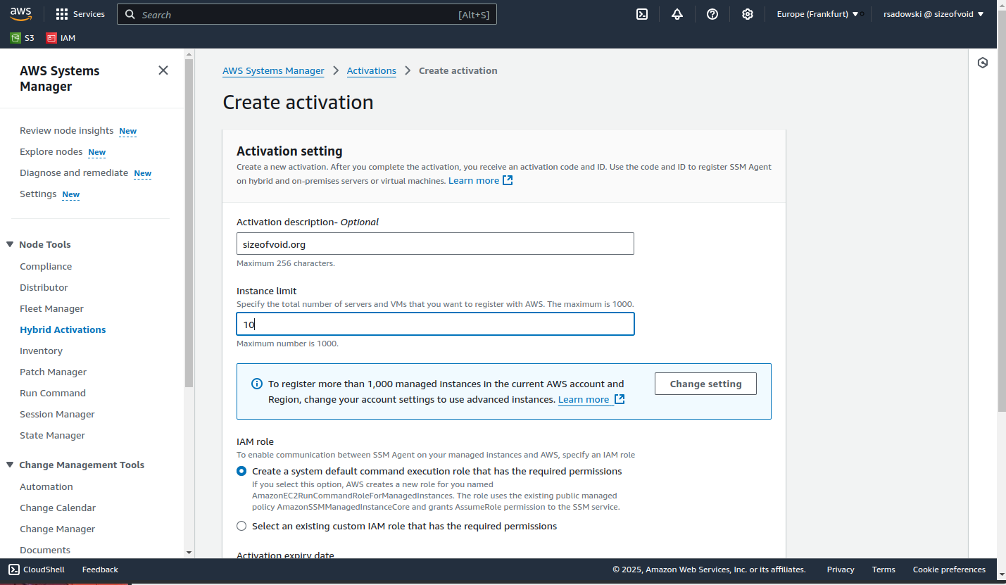 AWS Systems Manager - Create activation -